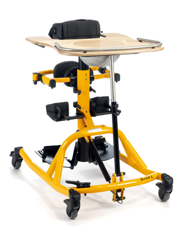 Een ventrale statafel geeft zowel het onder- als het bovenlichaam steun. In een ventrale statafel wordt het kind direct in een staande positie gebracht.