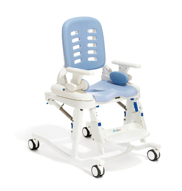 Een douche- en toiletstoel geeft voldoende ondersteuning en laat ruimte om goed te kunnen wassen. Deze stoel is niet gericht op positioneren, maar de instellingen moeten wel goed aansluiten bij het kind. Het is belangrijk dat een kind zich kan ontspannen en dat de stoel voldoende veiligheid bied.